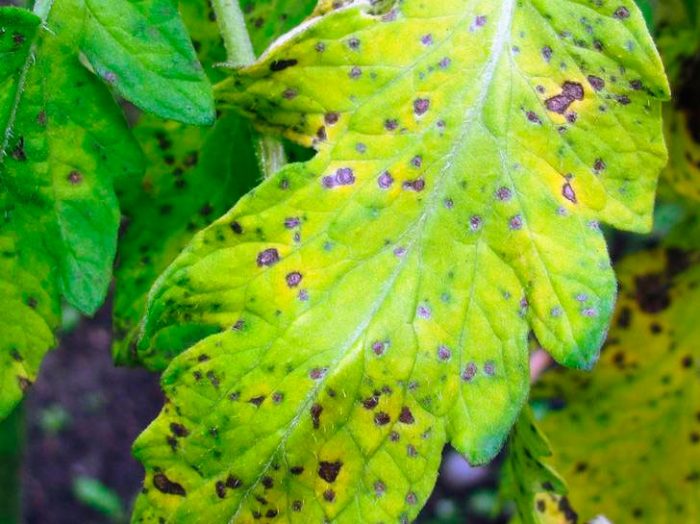 najbardziej aktywna choroba rozwija się w cieple (od 20 do 25 stopni) i przy wysokiej wilgotności powietrza (co najmniej 90%). Jeśli temperatura wzrośnie do 25-30 stopni (w szklarni jest to całkiem realne), a poziom wilgotności powietrza spadnie do 60 procent, doprowadzi to do zawieszenia rozwoju brązowych plam. Jednak te płytki liściowe, które są już dotknięte chorobą, będą musiały zostać odcięte i spalone, ponieważ nie będzie można ich wyleczyć. Dotknięte liście są przycinane bardzo ostrożnie, uważając, aby nie rozpylać zarodników grzybów. Zgarnij także wszystkie latające liście i zniszcz je, ponieważ mogą również występować zarodniki grzyba.