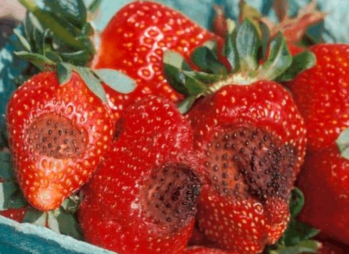 gdy truskawki zostaną dotknięte antraknozą ogrodową, ogrodnik może stracić do 80 procent owoców. W tym przypadku choroba jest niebezpieczna, ponieważ niszczy roślinę, ale przez długi czas objawy antraknozy mogą w ogóle się nie objawiać. Antraknoza wpływa na wszystkie nadziemne części krzewu. W górnej części blaszek liściowych i wąsów powstają wcięte małe plamki o brązowo-czerwonym kolorze, które z czasem stają się owrzodzeniami. Z czasem powiększają się i łączą ze sobą, obejmując rozległe obszary, przez co liście umierają. Z wąsów i liści choroba rozprzestrzenia się na owoce i kwiaty. Zewnętrznie dotknięte kwiaty wyglądają jak spalone, a ich śmierć następuje. Infekcja przenika do jajnika przez pręciki na kwiatach, dzięki czemu na owocach powstają wcięte plamy o ciemnym odcieniu, które osiągają średnicę 15-30 mm, z czasem wysychają i zmieniają kolor na brązowo-brązowy. Przy wysokiej wilgotności na dotkniętych obszarach na jagodach pojawia się śluzowata skorupa jasnoróżowego lub żółtego koloru, a jeśli pogoda jest sucha, następuje Mumifikacja chorych owoców.