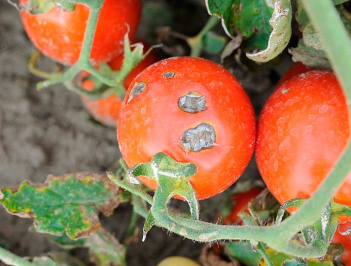 najczęściej dorosłe krzewy pomidorów chorują na antraknozę. Początkowo górne płytki liściowe więdną, na ich powierzchni powstają plamki, na których powstają małe sklerocje w kolorze czarnym. Na powierzchni niedojrzałych owoców pojawiają się wgniecione obszary o ciemnej barwie, które osiągają średnicę do 10 mm. z czasem stają się miękkie i czarne. W rezultacie następuje Mumifikacja owoców, a także maceracja systemu korzeniowego, dzięki czemu krzew można łatwo wyciągnąć z gleby. Choroba zwykle objawia się w ostatnich tygodniach letnich lub pierwszych jesiennych. Jeśli porażka jest masowa, możesz stracić więcej niż połowę plonu.