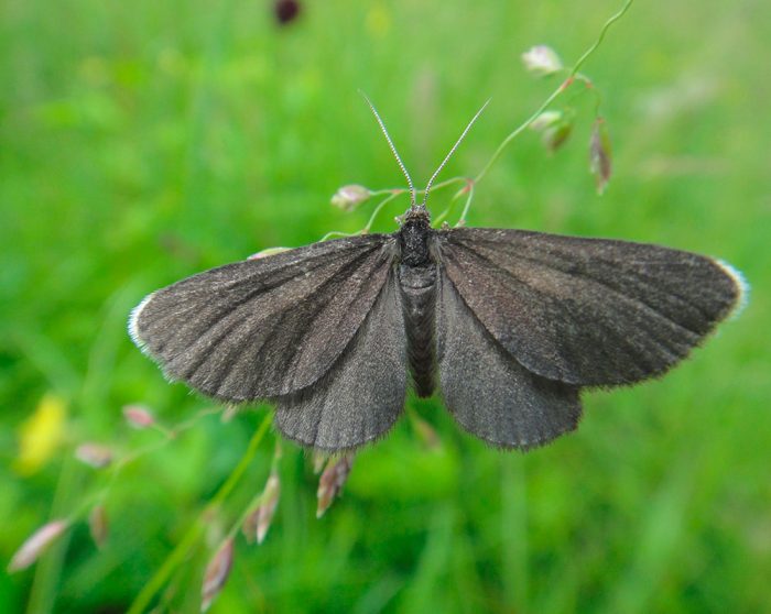 jest to leśny gatunek eurazjatycki, jego rozpiętość skrzydeł sięga 1,3 - 1,5 cm, skrzydła i ciało mają czarny kolor, a na przednich skrzydłach na szczycie znajduje się cienka biała krawędź. Aksamitnie zielone gąsienice wolą głównie jeść kupyr i ziemisty kasztan. Ale jeśli w pobliżu nie ma takich roślin, mogą osiedlić się na innych.