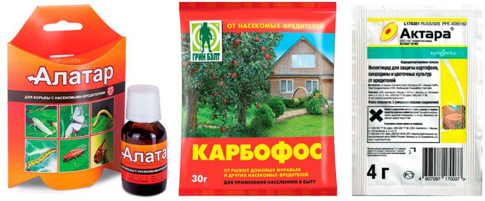 - karbofos lub Fufanon jest lekiem owadobójczym o szerokim spektrum działania. Roztwór przygotowuje się w następujący sposób: 1 litr wody łączy się z 1 miligramem produktu, aw szczególnych przypadkach ilość środka owadobójczego wzrasta do dwóch miligramów.