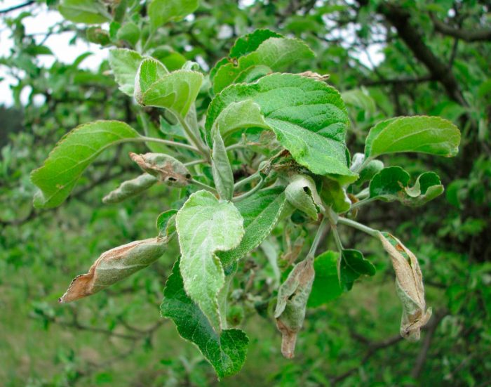 kilka rodzajów liści może osiedlić się na jabłoni: