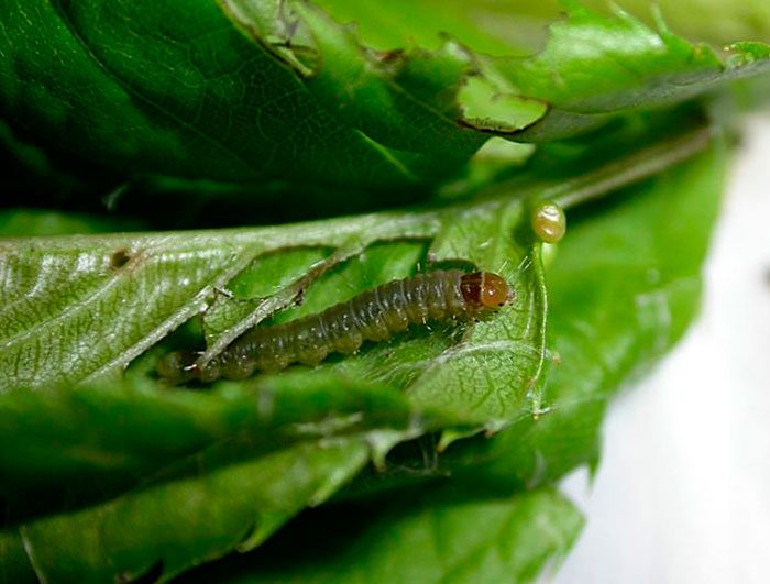 w przypadku, gdy na uprawach ogrodowych znajduje się duża liczba szkodników, zaleca się stosowanie silniejszych środków do ich zwalczania. Larwy ukryte w liściach są eksterminowane syntetycznymi pyretroidami, na przykład: Ivanhoe, Alfacin, Fatrin, Fastak i akord. Podczas korzystania z tych narzędzi należy ściśle przestrzegać instrukcji (patrz na opakowaniu), a Temperatura powietrza nie powinna przekraczać 23 stopni, jeśli jest cieplejsza, leki nie będą działać. Pamiętaj, że pyretroidy są bardzo toksyczne dla ludzi, dlatego eksperci zalecają ich stosowanie tylko wtedy, gdy inne metody okazały się mało skuteczne. Możesz również szybko pozbyć się szkodnika za pomocą pestycydów, na przykład: Inta-Vir, Rovicurt, Fury i Kinmix. Jednak środki te są również bardzo niebezpieczne dla ludzi.