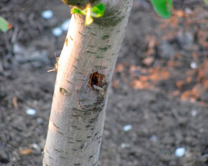 aby zapobiec pojawieniu się szkodników, powierzchnia pnia rośliny, a także podstawa gałęzi szkieletowych, są pokryte kompozycją złożoną z próchnicy i gliny. Ponadto, aby zapobiec pojawianiu się błędów, ogrodnicy często używają kłód pułapek. Wiosną na stronie w kilku miejscach musisz położyć kawałek kłody (klin). W okresie letnim mogą się w nich osiedlać korniki i składać tam jaja, z których wkrótce wyłaniają się larwy. Wraz z nadejściem okresu jesiennego kliny należy spalić.