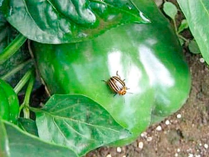 chrząszcz osiada bardzo rzadko na papryce, ale jeśli warunki są korzystne, może się to zdarzyć. Szkodnik może pozostawić cię bez zbiorów. Wczesną wiosną, po zejściu pokrywy śnieżnej, nie zapomnij ułożyć kawałków ziemniaków na miejscu, a następnie, gdy chrząszcze się do nich ślizgają, są zbierane i niszczone. Nie zapomnij codziennie sprawdzać kiełków pieprzu, jeśli zostaną znalezione szkodniki, są one umieszczane w słoiku wypełnionym stężonym roztworem soli. Najbezpieczniejszym sposobem na pozbycie się błędów jest ręczne zbieranie, ale zajmuje to dużo czasu i wysiłku. Do opryskiwania krzewów dotkniętych chrząszczem ziemniaczanym stosuje się tylko środki ludowe, na przykład: wywar lub napar z gorzkiej papryki, orzecha włoskiego, piołunu, pomidorów itp.