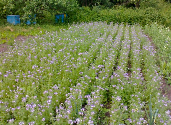 - jeśli siew zostanie przeprowadzony po zbiorach od ostatnich tygodni letnich do drugiej połowy jesieni, w tym przypadku taki syderat przyczyni się do poprawy i przywrócenia gleby, a także nasyci ją składnikami odżywczymi i poprawi skład. Po koszeniu facelia może być pozostawiona na powierzchni gleby jako ściółka, w tym przypadku może uratować system korzeniowy bylin przed zamarznięciem, podczas gdy gleba nie ulegnie erozji, a przydatne substancje nie zostaną z niej zmyte przez deszcze jesienią.