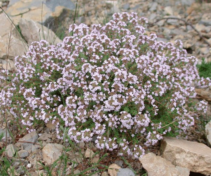 pachnący krzew lub krzew tymianku (Thymus) jest przedstawicielem największego rodzaju rodziny Jasnotowej. Rosyjska nazwa " tymianek "pochodzi od greckiego słowa" kadzidło "oznaczającego"substancję zapachową". W wielu przypadkach tymianek i tymianek są tą samą rośliną, ale tylko wtedy, gdy chodzi o tymianek pełzający. Taka roślina wśród ludzi ma wiele innych nazw: trawa Bogorodskaya, duszka cytrynowa, muchopal, kadzidło, czebarka, werest. Ojczyzną takiej rośliny jest Afryka Północna, pierwsze wzmianki o niej można znaleźć w pismach Dioscorides i Theophrastus. W skład tego rodzaju wchodzi kilkaset gatunków, w naturze można je spotkać na terenie Grenlandii i Eurazji. Taka kultura jest poszukiwana w przemyśle perfumeryjnym i spożywczym, a także w medycynie.