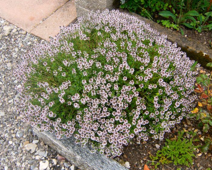 taka roślina jest również nazywana cząber lub tymianek, w warunkach naturalnych występuje na Syberii, Europie Zachodniej, Dalekim Wschodzie iw europejskiej części Rosji. Taka wieloletnia roślina osiąga wysokość około 15 centymetrów. Pędy pełzające o cylindrycznym kształcie, w ich dolnej części znajdują się wystające Owłosione pędy. Kształt ogonków liściowych jest lancetowaty, a ich długość sięga 10 mm. Wysokość szypułek wynosi około 15 centymetrów. Otwarcie kwiatostanów głowy obserwuje się w lipcu, kwiaty są pomalowane na fioletowo-różowy kolor. Ten gatunek jest uprawiany od 16 wieku. Wśród odmian tego gatunku są takie, których kwiaty są pomalowane na biało, karminowo i różowo, a także ma formę z barwnymi liśćmi. Zadbaj o ten gatunek w taki sam sposób, jak o roślinę okrywową.