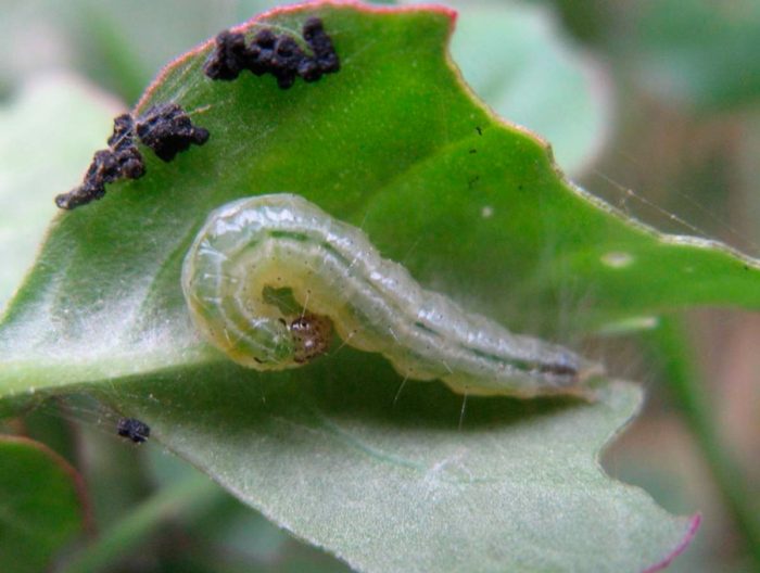 gąsienice ćmy łąkowej gryzą niewłaściwą powierzchnię płyt liściowych, podczas gdy oplatają je pajęczynami. I traumatyzują kwiaty i łodygi. W celu zapobiegania należy upewnić się, że na stronie nie ma chwastów, aw okresie jesiennym wykonuje się kopanie. Aby pozbyć się takiego szkodnika, krzaki są spryskiwane roztworem Decis.