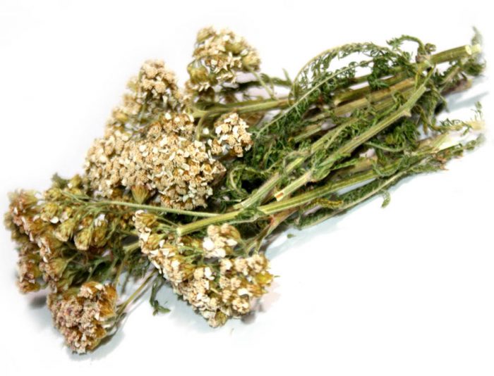 - maść . Weź garść świeżych kwiatostanów i liści krwawnika. Należy je dobrze zmielić w moździerzu i połączyć ze stopionym niesolonym smalcem w stosunku 1:1. To narzędzie stosuje się w przypadku siniaków.