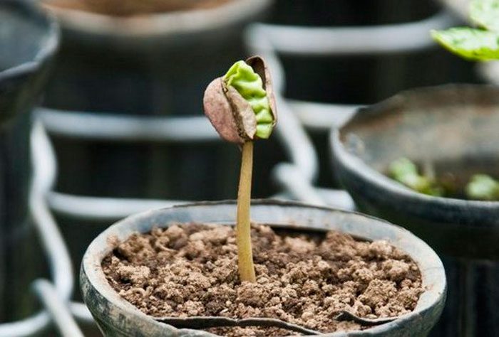 każdy hodowca kwiatów może wyhodować drzewo z ziaren kawy, co najważniejsze, zrobić wszystko poprawnie. Do siewu nasion stosuje się pojemnik wypełniony perlitem lub grubym piaskiem. Nasiona wymagają przygotowania przedsiewnego, w tym celu skórkę usuwa się z ziaren i zanurza w słabym roztworze potasu manganowego. Następnie możesz rozpocząć siew, a nasiona są zakopane w podłożu o około 20 mm. uprawy są systematycznie nawilżane z opryskiwacza.