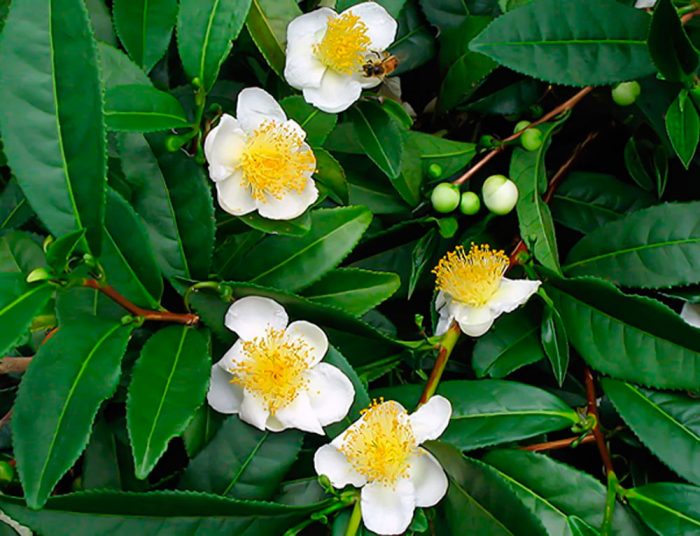 Kamelia bohea ― Camellia bohea) - w naturze występuje w lasach Chin i woli rosnąć na zboczach górskich lub w wąwozach. Gatunek ten reprezentowany jest zarówno przez krzewy, jak i drzewa osiągające wysokość 15 metrów. Liście mają eliptyczny lub jajowaty kształt i dorastają do 10 centymetrów długości i do 4 centymetrów szerokości. Błyszczące liście są pomalowane na ciemnozielony kolor. Młode liście mają pokwitanie białawych włosów, a stare liście są nagie. Kwiaty pachowe są pomalowane na biało i mają dość krótkie szypułki. Rosną pojedynczo lub 2-3 rzeczy.