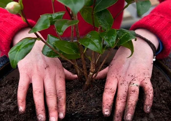 odpowiednia ziemia powinna mieć kwaśne pH 4,5-5. Kamelia uprawiana w domu różni się od dzikich, ponieważ może spokojnie rosnąć w ziemi, której kwasowość jest mniejsza niż 4. Odpowiednia mieszanka ziemi składa się z ziemi darniowej, torfowej i liściastej, a także piasku pobranego w proporcji 1:2:2:1. Te kamelie, które rosną w wannach, muszą co roku wypełniać ziemię nawozami. Nie zapomnij o dobrym drenażu.