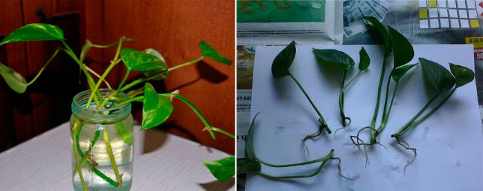 najczęściej hodowcy kwiatów rozmnażają scindapsus przez sadzonki. Wierzchołkowe sadzonki wycięte podczas formowania krzewu do ukorzenienia można umieścić w pojemniku z wodą lub posadzić w podłożu, dadzą korzenie dość szybko. Główne warunki udanego ukorzenienia:
