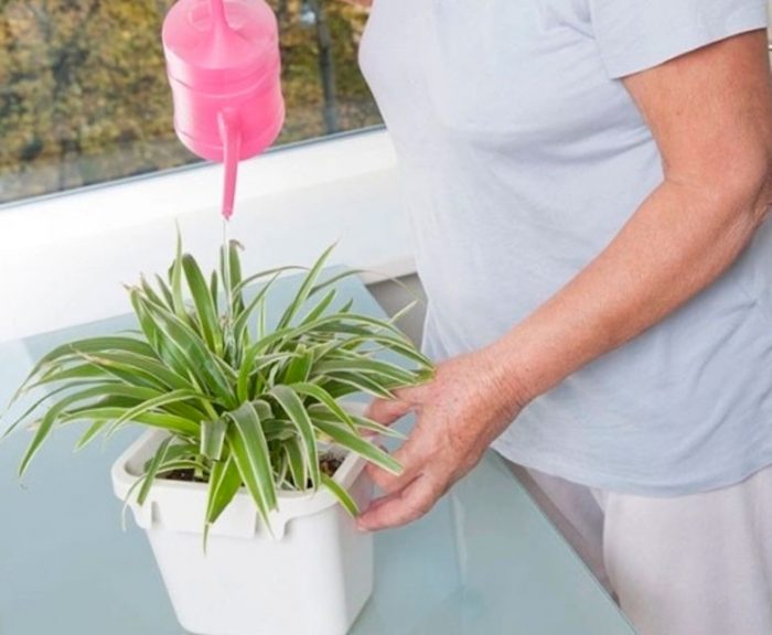 Chlorophytum w warunkach pokojowych w okresie wiosenno-letnim potrzebuje dużej ilości wilgoci, w tym celu jest podlewany dość często i obficie. Jeśli roślina nie ma wystarczającej ilości wody, zacznie tworzyć bulwiaste pogrubienie. Zimą podlewanie powinno być rzadsze, ale jednocześnie upewnij się, że bryła ziemi w doniczce nie wysycha, ale nie można pozwolić na stagnację płynu w systemie korzeniowym.