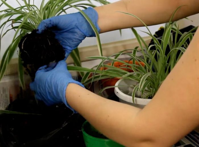 podczas gdy młody kwiat wymaga częstszych przeszczepów, które są przeprowadzane co roku, a dorosłe okazy poddaje się takiej procedurze 1 raz na 2 lub 3 lata. Przeszczep je w ostatnich zimowych lub pierwszych wiosennych tygodniach. Do uprawy chlorophytum wybiera się szeroki pojemnik, który jest wypełniony lekką i luźną mieszanką gleby, powinien zawierać próchnicę, darń i glebę liściastą oraz piasek (2:2:2:1). Pamiętaj, aby zrobić dobrą warstwę drenażową na dnie doniczki.